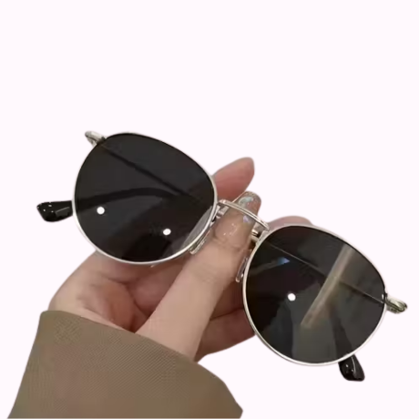 - Stylish oval sunglasses crafted with a premium silver metal frame.