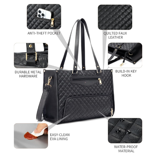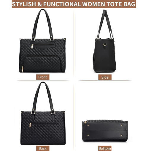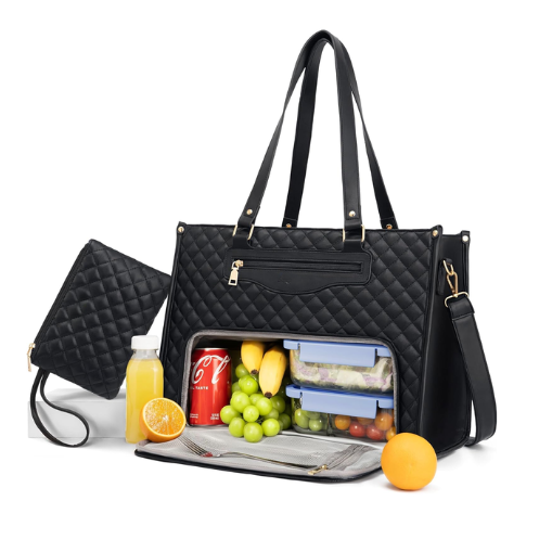 15.6 Inch Laptop Work Bag with Insulated Lunch Box Compartment & Purse Large Capacity Quilted Computer Handbag